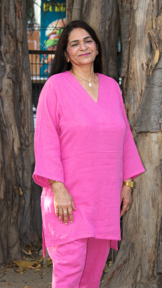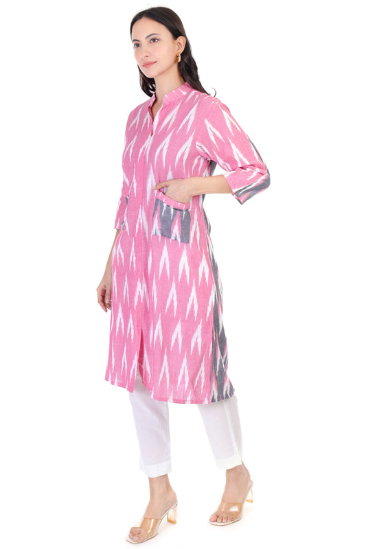 Stylish Pink & Grey Ikkat Cotton Kurta