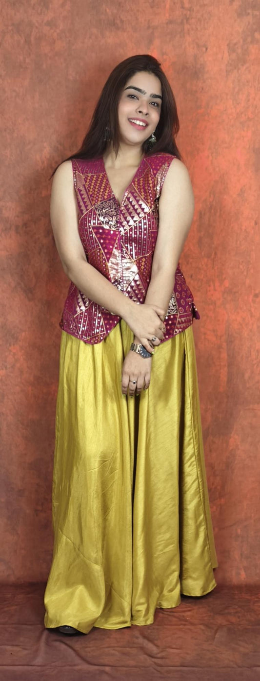 Elegant White Tafetta Silk Co-ord Set with Silk Pink Jacket